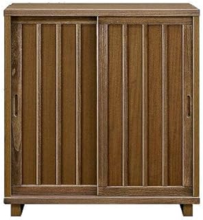 日本製 幅90cm ロータイプキャビネット 引き戸タイプ ガラス扉付き 完成品 (ライトブラウン)