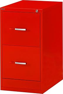 キャビネット 2段 ファイリングキャビネット (レッド 赤) カギ付き引出し 書庫 [オフィス/会社/学校/事務所] 書類保管庫 袖机 (幅400×奥行き620×高さ740mm)