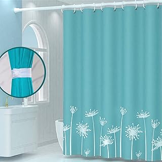 MOFV ティールファブリックシャワーカーテン 72 x 72インチ シャワーカーテン フック12個付き 収納ベルト 速乾性 洗濯可能なシャワーカーテン 浴室用防水シャワーカーテン