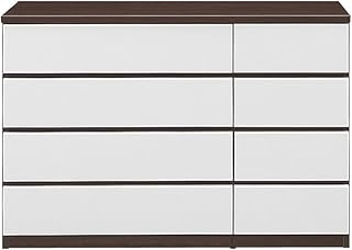 大川家具 関家具 ローチェスト 120cm幅4段 ホワイト/ブラウン 196218