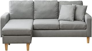 ソファー 3人掛け ソファ 即納 東京出荷 ソファベッド 収納機能 引き出し オットマン ファブリック PUレザー コーナーソファ ローソファー 片肘 北欧 おしゃれ 人気 ソファ L字 リビングソファ (Gray-Linen)