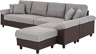 モダンデコ ソファ ソファー 【保証1年間】 4人掛け カウチソファ コーナーソファ リビング 【AQUA】 (グレー×ブラウン)