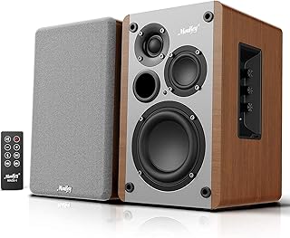 Moukey ブックシェルフスピーカー スタジオモニタースピーカー 3ウェイ 豊かな低音 温かみの中音 クリアな高音 Bluetooth5.0 ステレオアクティブニアフィールド モニター 木製 エンクロージャー RMS 50W クリスマスプレゼント