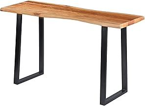 Tup The Urban Port 195122 Industrial Wooden Live Edge Desk with Metal Sled Leg Support, Brown and Black 141[並行輸入]