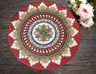 The Home Talk Set of 4 Braided Cotton placemats, Printed Design, 15 INCH Round, Best for Bed-Side Table/Center Table, Dining Table/Shelves- Multicolor