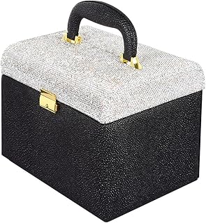 キラキラ光るダイヤモンド メイクアップ コスメティック ポータブル 収納ボックス ケース アーティスト オーガナイザー キット ジュエリーボックス ロック可能 旅行に