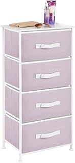 mDesign 縦型ドレッサー収納タワー - 頑丈なスチールフレーム 木製トップ 簡単に引っ張れるファブリックビン - 寝室のオーガナイザーユニット 廊下 玄関 クローゼット用 - 引き出し4つ ライトパープル/ホワイト