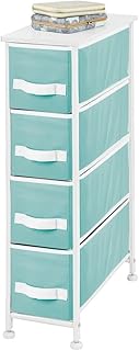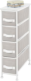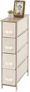 mDesign 細い縦型ドレッサー収納タワー - 頑丈なメタルフレーム 木製トップ 簡単に引っ張れるファブリック容器 - 寝室 廊下 玄関 クローゼット用オーガナイザーユニット - 引き出し4つ - グレー/ホワイト