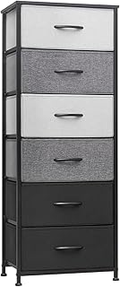 Crestlive Products 縦型ドレッサー収納タワー - 頑丈なスチールフレーム 木製トップ 簡単プルファブリックビン 木製ハンドル - オーガナイザーユニット 寝室 廊下 玄関 クローゼット - 6つの引き出し(ブラック&グレー)