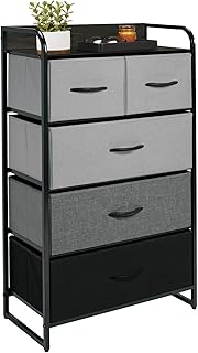 mDesign ドレッサーストレージタワー - 頑丈なスチールフレーム 木製トップ&ハンドル 簡単に引っ張るファブリックビン - オーガナイザーユニット 寝室 廊下 玄関 クローゼット - 5つの引き出し - ブラック/チャコール