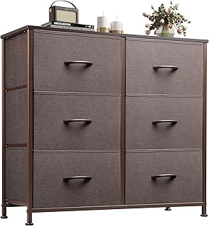 WLIVE 縦型ストレージタワー ドレッサー 6つの簡単プルファブリック引き出し 頑丈なメタルフレーム 木製テーブルトップ 簡単プルハンドル オーガナイザーユニット 寝室 廊下 保育園 玄関 クローゼット ブラウン