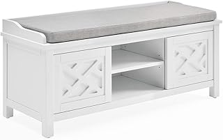 Alaterre Furniture コヴェントリー 幅45インチ 木製収納ベンチ クッション付き ホワイト