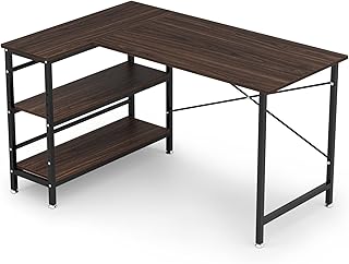 コーナーデスク L字デスク 耐荷重140KG 幅130cm 奥行90cm 高さ75cm パソコンデスク PCデスク 左右入替可能 棚高さ調整可 アジャスター付き テレワーク用 在宅勤務用 収納ラック付き 省スペース 組み立て簡単 頑丈 木製 オフィス シンプル スチール脚 メラミン加工 ゲーミング 作業机 勉強机 幅130cm 奥行90cm 高さ75cm 一 (ウォールナット)