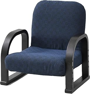山善 高座椅子 幅53×奥行51×高さ51-59cm ハイバックタイプ コンパクト 極太肘掛け 座部高さ調節可能 頑丈 組立品 ネイビー/ダークブラウン AWKC-55(NV/DBR)
