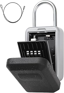 セキュリティキーボックス 屋外 鍵収納ボックス 防水 ダイヤル式 暗証番号 大容量 操作簡単 ロックポケット 4桁 暗証番号 南京錠式 盗難防止 侵入対策 幅9.2cm 日本語説明書付き (ブラック)