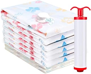 MEIQIHOME 圧縮袋 衣類圧縮袋 9枚組【80×60cm*3枚 70×50cm*3枚 60×40cm*3枚 手動ポンプ付き】 掃除機対応 防塵防湿 虫・臭い・カビ・ダニ対策 ふとん圧縮袋 衣類 収納/引越し/衣替え 出張 旅行 真空パック