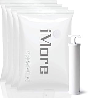 iMore 布団圧縮袋 4枚入【100×80cm ポンプ付き 無料交換】 LLサイズ な収納力 ふとん圧縮袋 衣類圧縮袋 密封性高い あっしゅく袋 ふとん 布団収納袋 掃除機対応 収納/引越し/衣替え 真空圧縮バッグ 18ヶ月品質保証