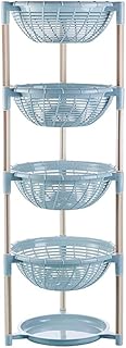 bretoes 多機能プラスチックストレージバスケット フロア三脚 キッチン 野菜 フルーツストレージラック 排水ラック (ブルー 4層)