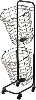 エムール ランドリーラック ランドリーバスケット 2段 25L 大容量 取り外し可能 キャスター付き ブラック