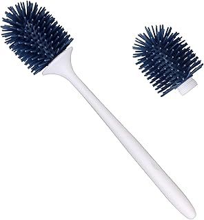 Bretoes シリコーン トイレブラシ 浴室ブラシ 交換用ヘッド (ハンドル1個+ブラシヘッド2個)(ブルー&ホワイト)