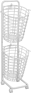 WEIMALL ランドリーバスケット 2段 スリム 取り外し可能 キャスター付き 収納 洗濯カゴ ランドリーラック (ホワイト)