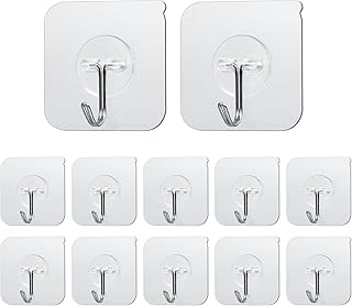 LOPEN STU プレミアムウォールフック 22ポンド (最大) 高耐久 粘着フック 釘なし 透明シームレスフック 防水 耐油 バスルーム キッチン 再利用可能 ユーティリティフック 12個