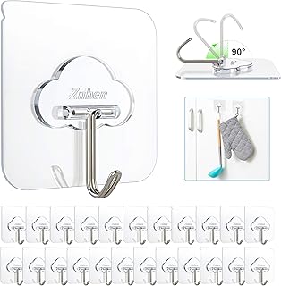SidiOutil ユーティリティフック 20個パック 透明でシームレスな粘着フック 11ポンド/5kg(最大) 高耐久壁フック 防水 耐油フック 家庭 バスルーム キッチン 2.8インチ x 2.85インチ