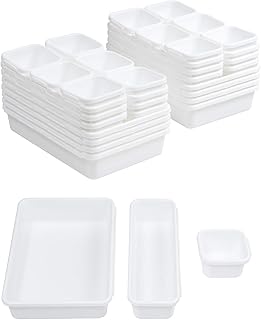 BYCY 引き出しオーガナイザートレイ18点セット ホワイト キッチン/オフィス/バスルーム用引き出しディバイダー インターロッキングビンパック (18ピース)