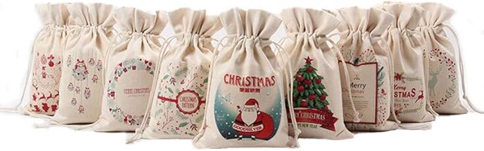CCINEE ギフトバッグ クリスマス ラッピング袋 巾着袋 4柄x3枚 12枚セット 小 麻素材 リネン サンタさん 雪だるま トナカイ ペンギン プレゼント入れ 小物入れ 収納袋 ジュエリーポーチ