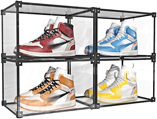 JuxYes 積み重ね可能アルミニウムディスプレイケース アクリル クリア 靴箱 ストレージコンテナ 磁気サイドオープン 完全に透明なスニーカーディスプレイボックスコンテナ 透明アクリルディスプレイケース 靴やコレクション用