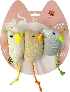VOVIGGOL 猫 キャットニップ おもちゃ 屋内 猫用 3 パック 猫 おもちゃ マウス ネコ インテラクティブ コットン リネン付 子猫 おもちゃ マウス 猫 おもちゃ 猫 羽 おもちゃ 咀嚼 狩猟 歯用