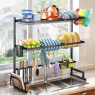 SNTD シンク上食器乾燥ラック 幅調節可能 (32インチ≤シンクサイズ≤ 40インチ) ステンレススチール キッチン用品 収納カウンターオーガナイザー ブラック