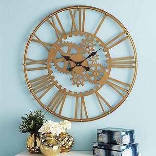 CosmoLiving by Cosmopolitan 52568 インダストリアルスタイル ゴールドメタル ラウンドギア 壁掛け時計 ローマ数字 32インチ x 32インチ