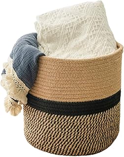 ASDSH綿ロープ 収納バスケット 植物バスケット 織り収納バスケット コットンロープ バスケット 洗濯かご ランドリー 折りたたみ インテリア 脱衣カゴ 鉢カバー 可愛い 円形 コットン ジュート(黒 30CM)