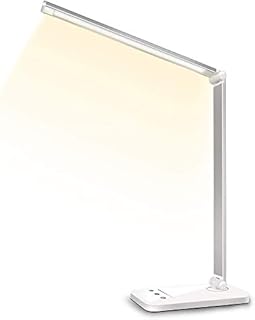 Probasto led デスクライト スタンドライト 卓上ライト タッチパネル式 5段階調色 10段階調光 折り畳み式 USB充電ポート付き 目に優しい 省エネ 電気スタンド 読書/勉強/仕事用 (シルバー/ホワイト)