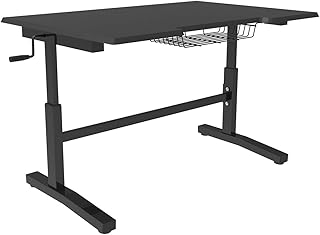 E-WIN スタンディングデスク 昇降デスク 【届いてすぐ使える!】キャスター(固定脚)取付けだけの簡単組立 天板サイズ幅58cm×奥行40cm 昇降 手動 パソコンデスク オフィスワークテーブル 折りたたみ 在宅 ブラック SD58-BK【メーカー保証:1年】