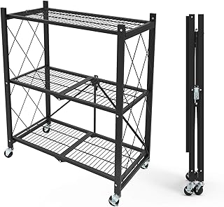 E-WIN 折りたたみラック【届いてすぐ使える!】 3段 幅70.5cm キャスター取り付けだけの簡単組み立て オープンラック スチールラック ブラック 黒 X-3-BK【メーカー保証:1年】